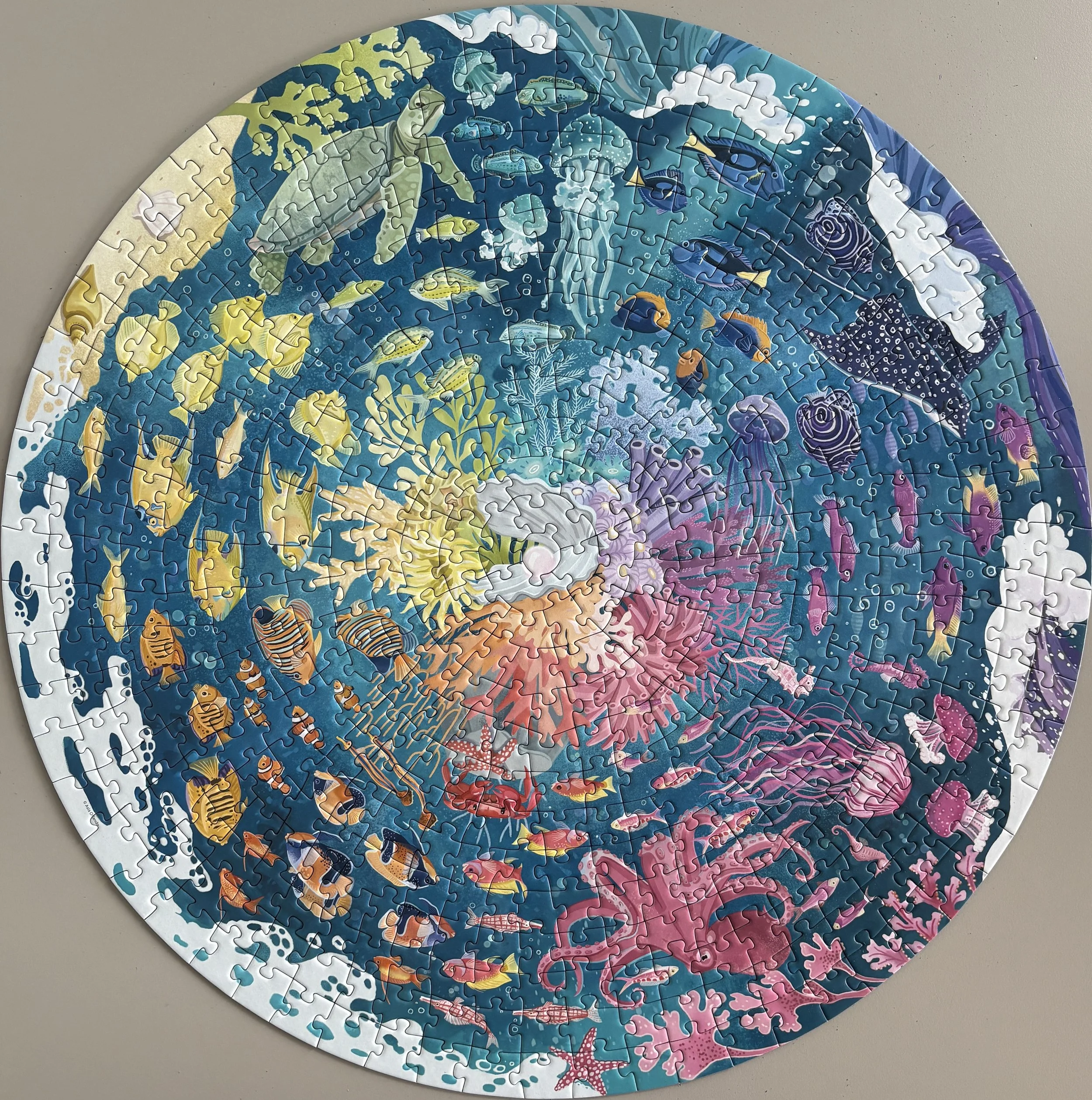 My 3rd and final circular puzzle for the year was a ton of fun and just the right amount of challenging. I wasn’t convinced at the idea of round puzzles but now I’m firmly on board and will most certainly be trying more circulars in the future. This one was actually a bit trickier than I expected. It’s fairly easy to separate the pieces by colour, but there are a lot of fishes, and it was sometimes difficult make heads or tails of them when they look the same on all the pieces. To add to the challenge, the fish in the blue section have yellow and orange features, and the fish in the orange corner have a lot of blue features. Fortunately, the turtle was pretty easy to assemble and the waves on the border helped to give everything some structure while I tried to make sense of the different fish species. I was worried about the octopus but once I got all the pieces together it didn’t take too long to put together. The central coral structure was a ton of fun, but I had a hard time picking out the pieces that make it up. On a future attempt, I would probably pick these pieces out first and build a solid foundation that I can build around of instead of working from the outside in, which is roughly what I did this time. Still, I’m quite happy with my time, which is only 2 minutes higher than the average. In fact, I’m about 8 minutes below the average when just factoring in 1st attempts. I’ll take that as a solid win!